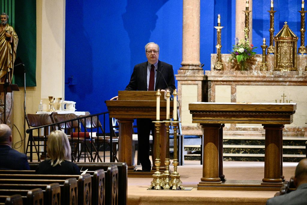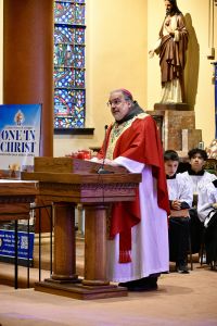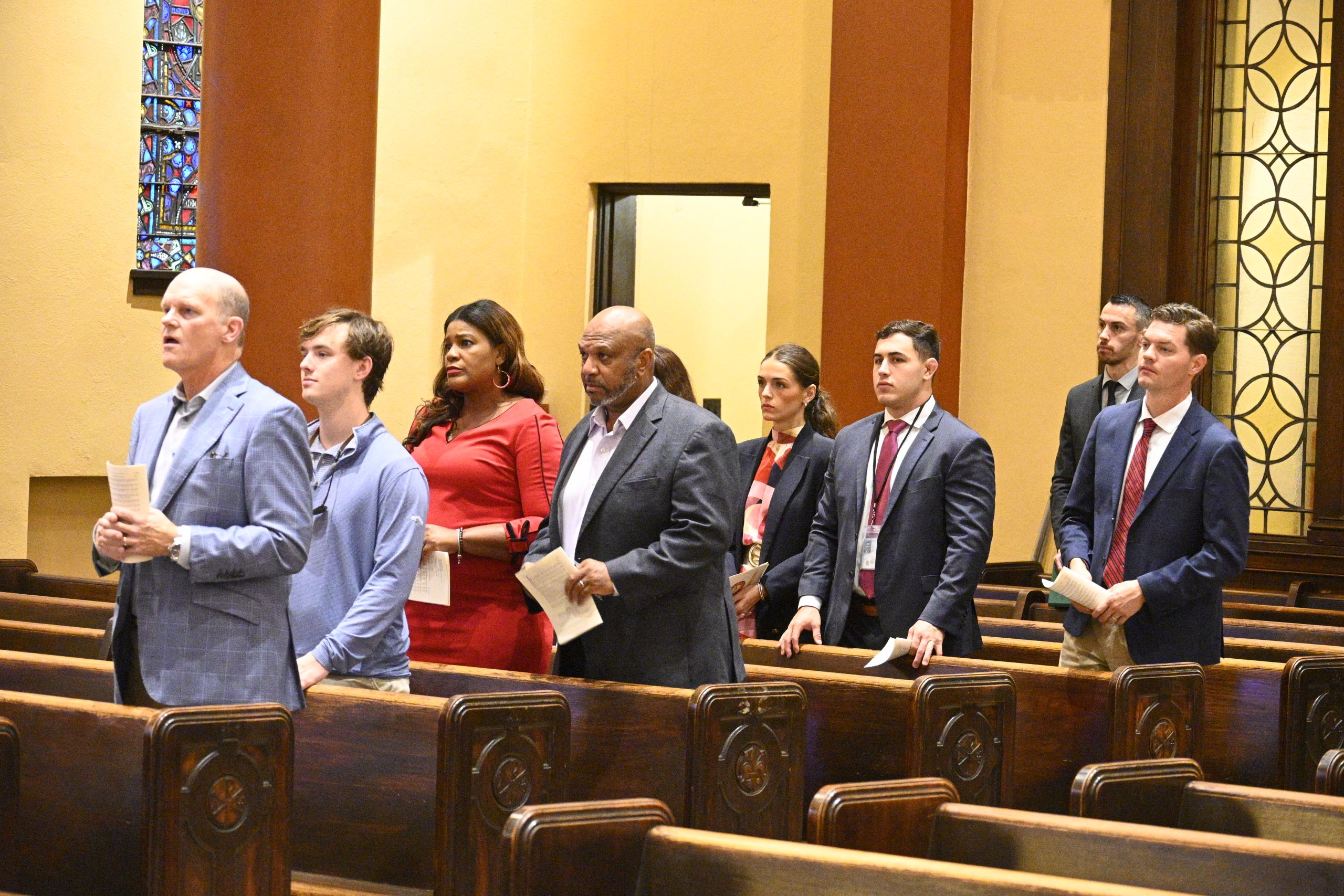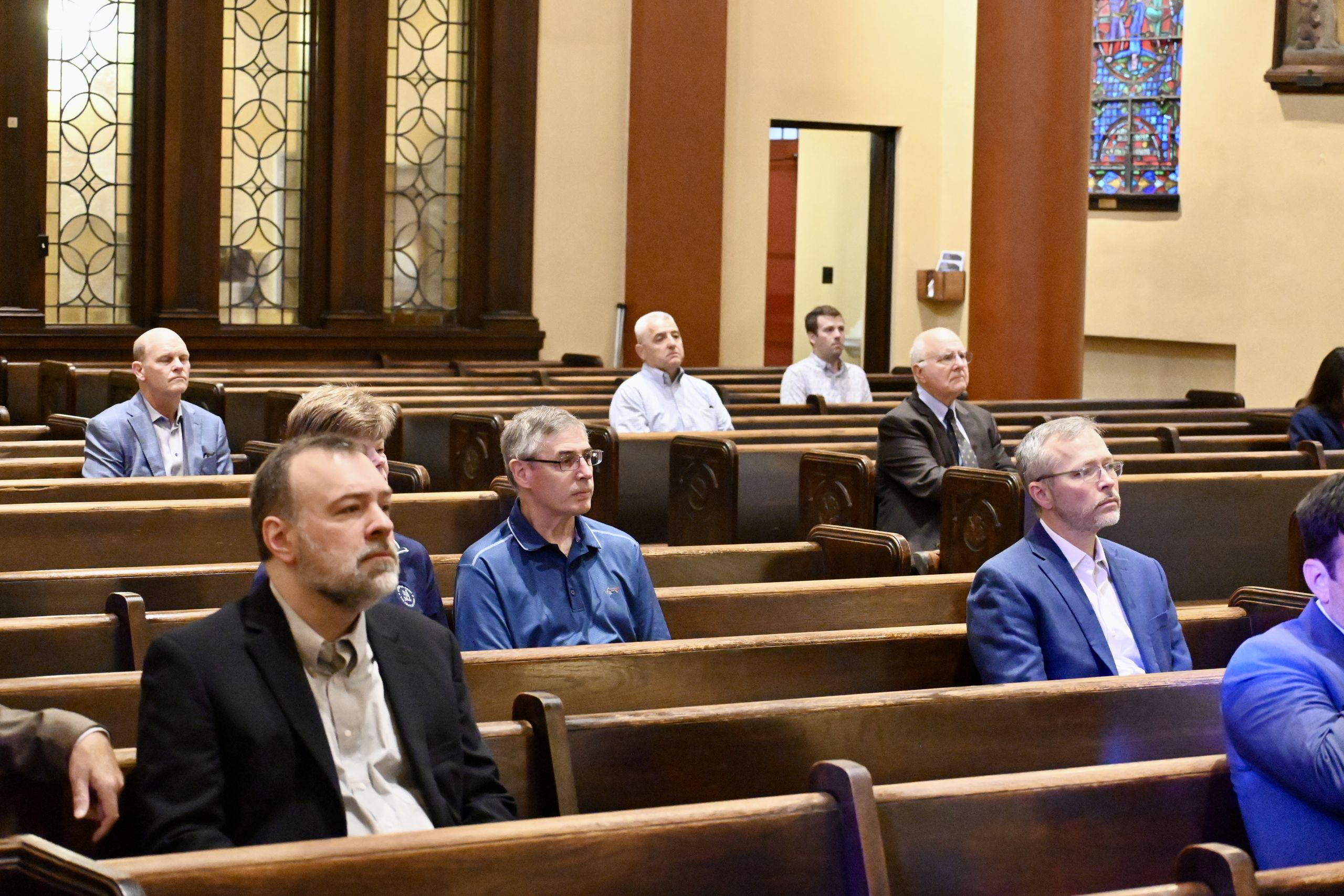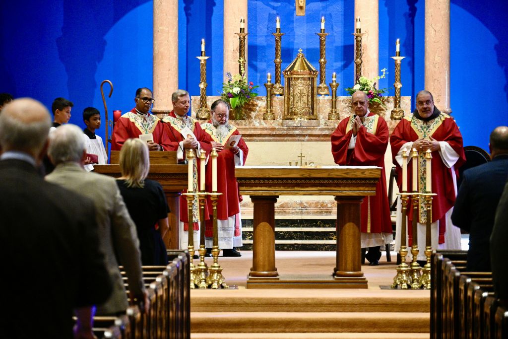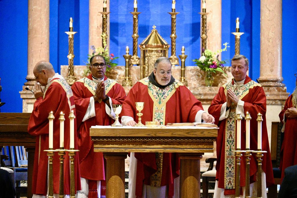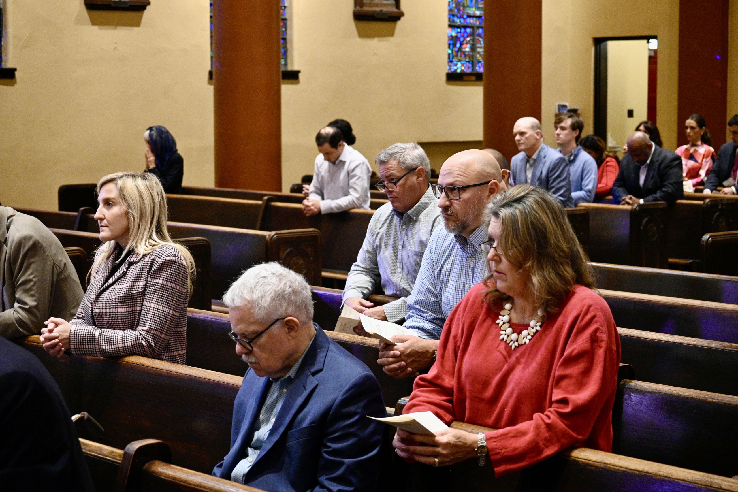 On Tuesday morning, Bishop John Stowe celebrated the Traditional Red Mass alongside Fr. Peter Joseph, Fr. Anthony McLaughlin, Fr. John List, and Dcn. John Hinkel among attending professionals in the legal sector at St. Peter Catholic Church in Lexington.