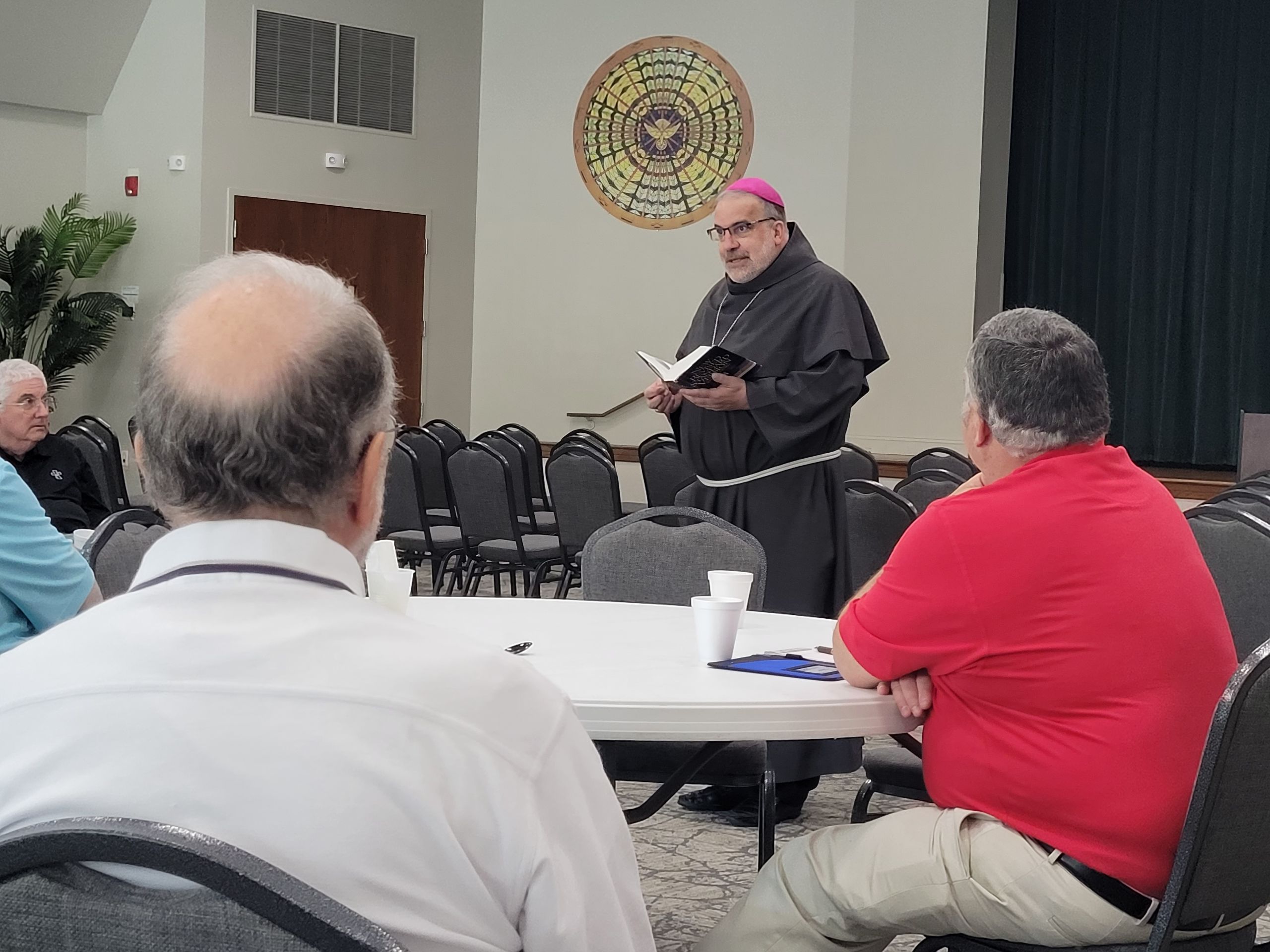 Deacon Mike Lynch, director of the diocese’s diaconate office, made announcements about upcoming study sessions and the annual deacons and wives retreat in October.