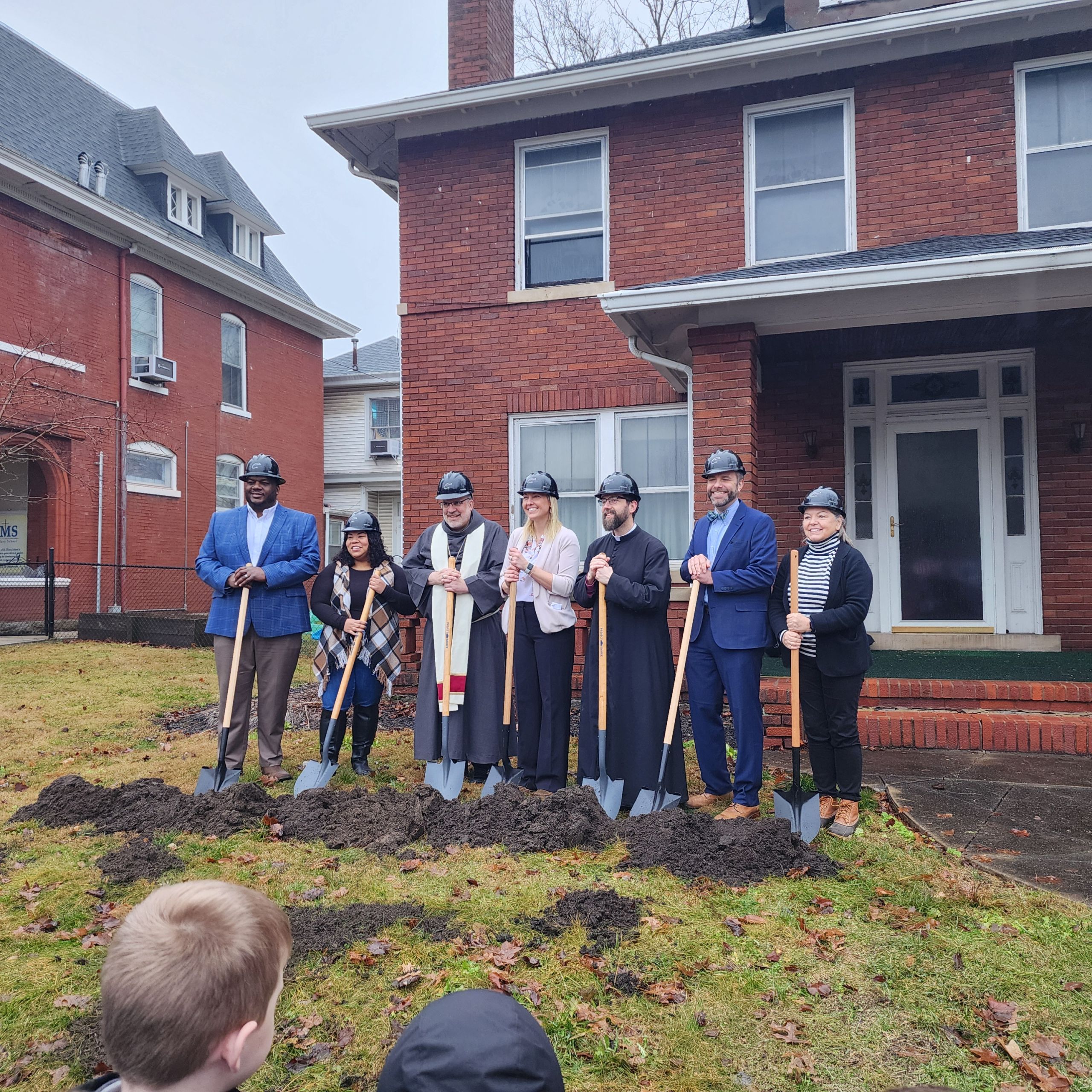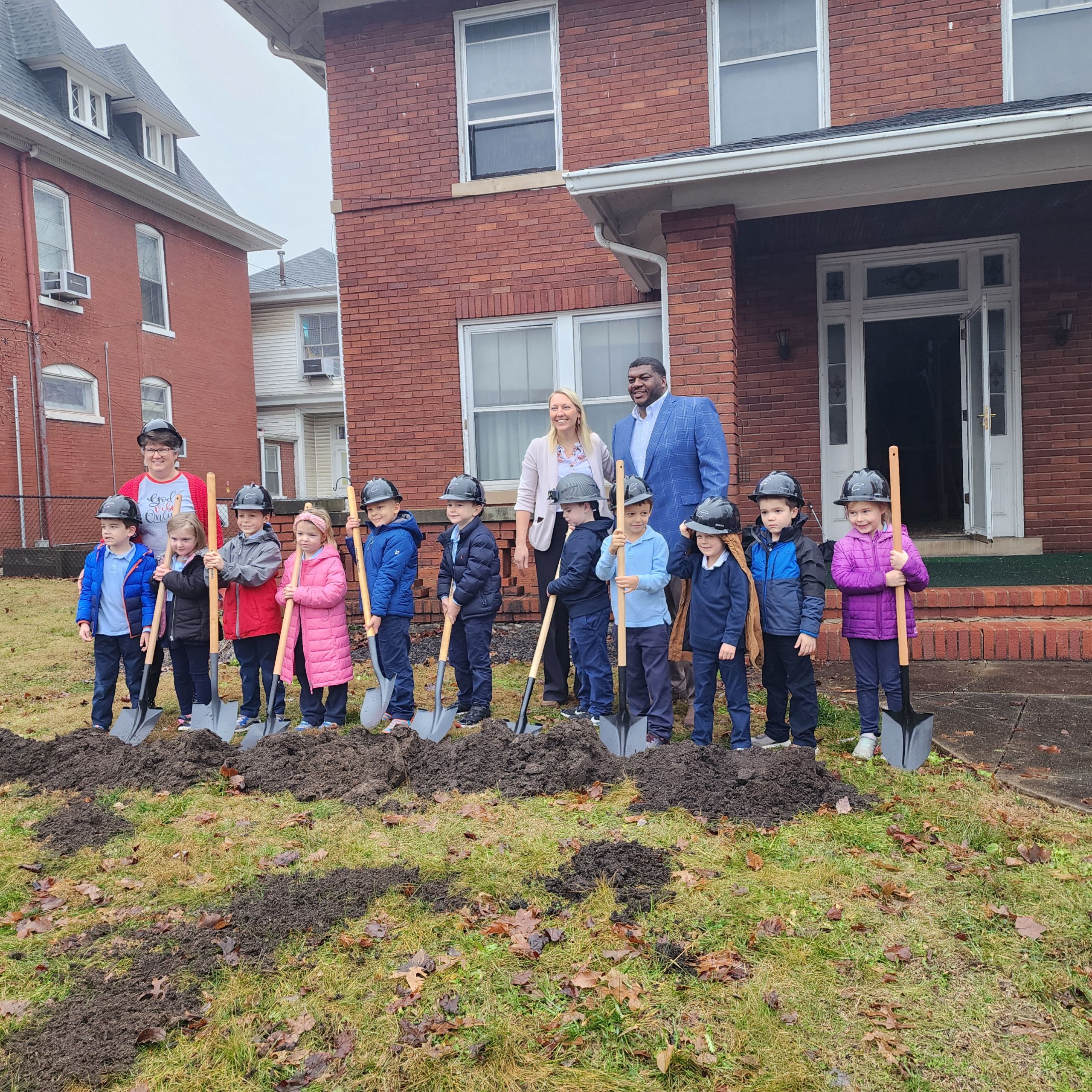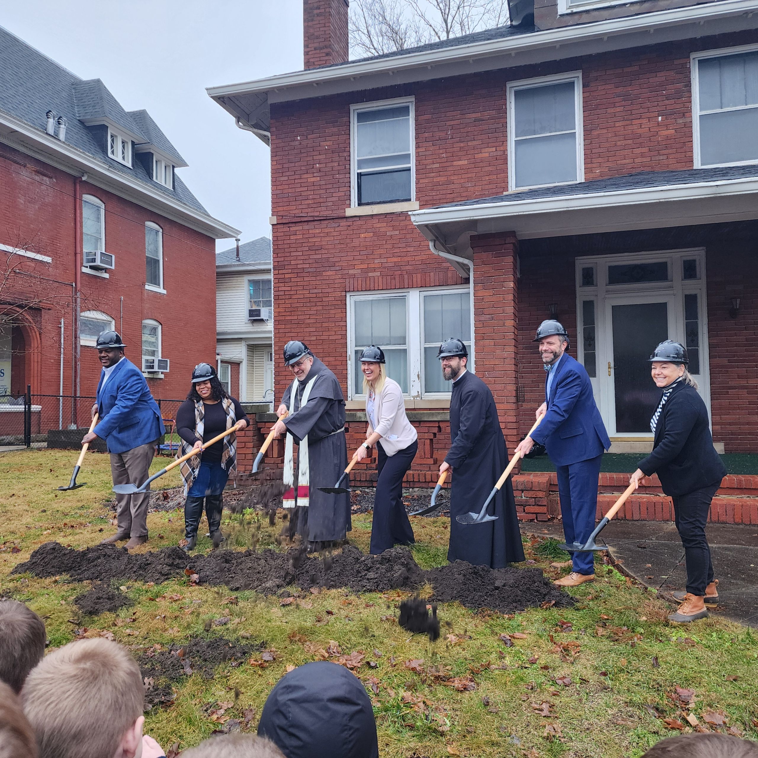 Groundbreaking for the expansion of facilities to add grades six through eight at St. Mary School in Paris, Kentucky, took place on Thursday, January 25. Bishop John Stowe was joined by Fr. Danny Fister, pastor of Annunciation Parish, Superintendent of Catholic Schools Dr. Kyle Lee, St. Mary Principal Miranda Chaplin, and members of the Paris Chamber of Commerce and others in the community.